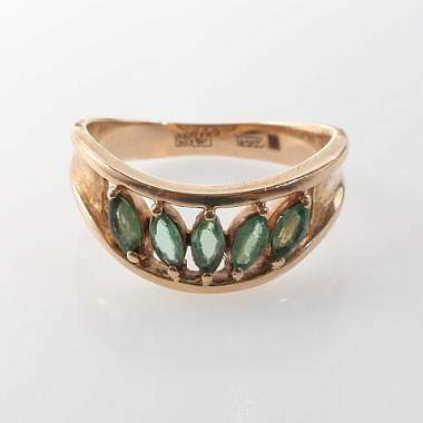 УИН: 6432500710620340Описание вставок: 5 Зеленых недрагоценных камнейОбщий вес: 4.7Чистый вес: 4.225Вес вставок: 0.475Высота, мм: 13Высота шинки, мм: 3