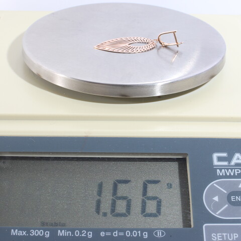 Серьга золото 585, общий вес - 1.65 г, чистый вес - 1.65 г