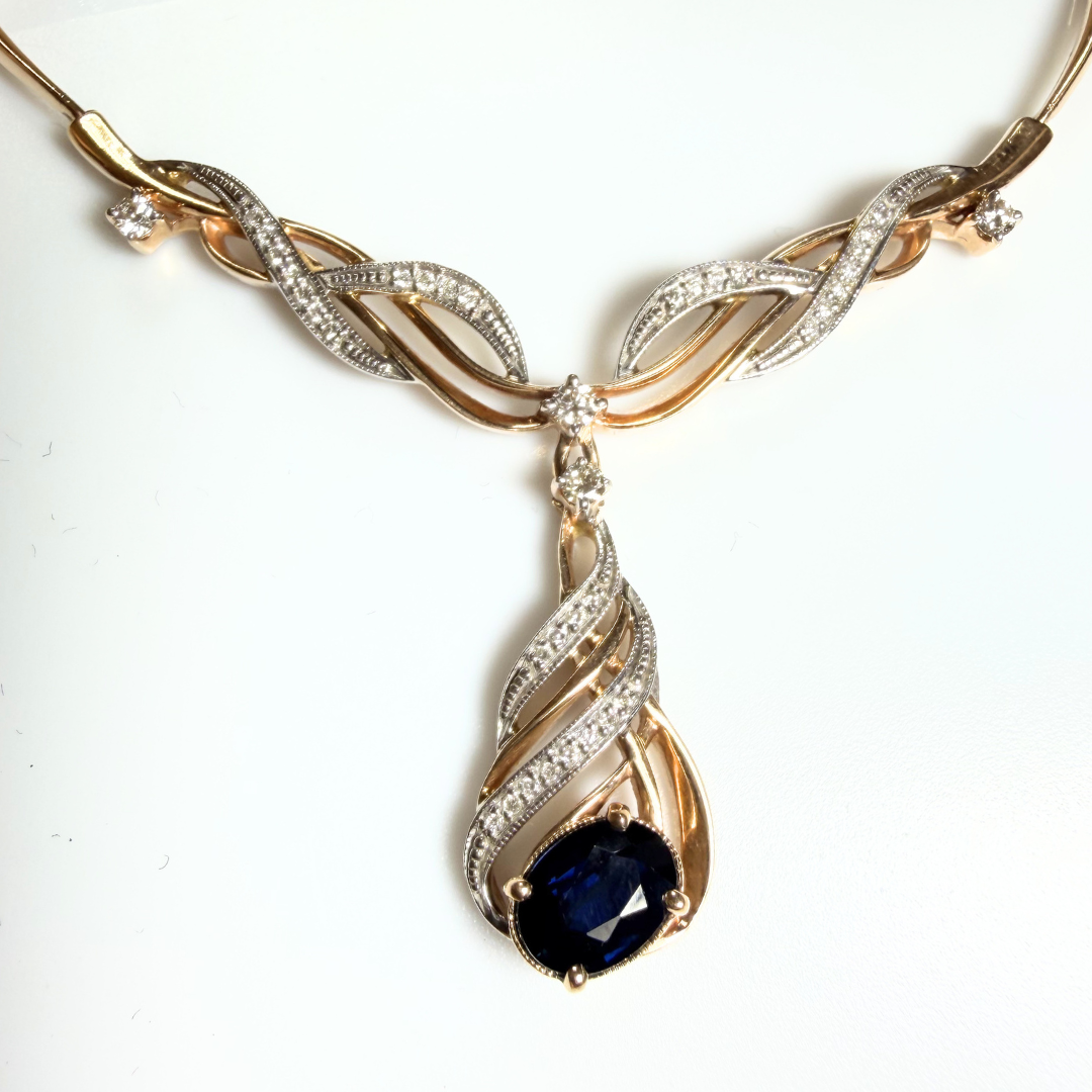 УИН: 6432500112583584Описание вставок: 27 Прозрачных недрагоценных камней,4 бриллианта Кр-17 - 0,132 кар.3/5Б,1 Синий недрагоценный каменьОбщий вес: 21.27Чистый вес: 20.867Вес вставок: 0.403Вид конструкции колье: МягкоеДлина, см: 50Вставки: Да