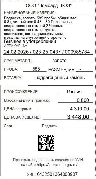 Цена за грамм общего веса: 4310Цена за грамм чистого веса: 7662.22Организация: ООО "Ломбард ЛЮЭ"Металл: золотоПроба: 585Артикул: 24.02.2026 / 023-25-0437 / 000985784Базовая единица: шт