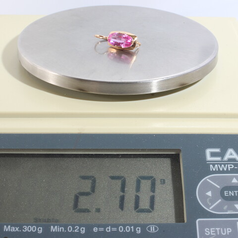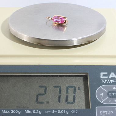 Описание: вид замка - французскийУИН: 6432500987528051Описание вставок: 1 Розовый недрагоценный каменьОбщий вес: 2.71Чистый вес: 1.288Вес вставок: 1.422Высота, мм: 25
