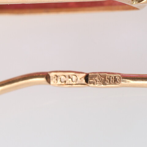 Глубина ушка, мм: 10Вид замка: ФранцузскийВставки: ДаШирина, мм: 10Клеймо: ДаСостояние: бывший в употреблении