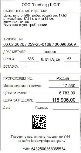 Цена за грамм общего веса: 6783Цена за грамм чистого веса: 6783Организация: ООО "Ломбард ЛЮЭ"Металл: золотоПроба: 585Артикул: 06.02.2026 / 259-25-0109 / 000983569Базовая единица: шт